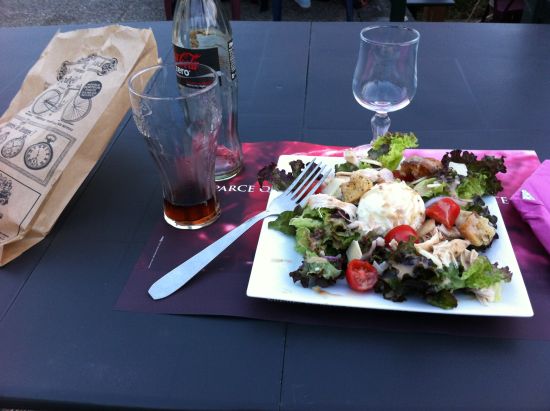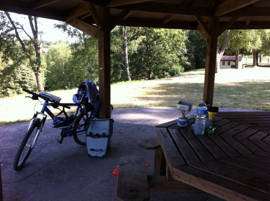 Onderweg heb ik even wat gegeten vlakbij een camping in Darney. Er was daar een handig plaatsje om mijn kookgerei op te stellen. Speciaal op verzoek, hierbij een foto daarvan: