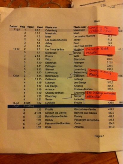 Vandaag kwam ik ook weer verschillende mensen tegen. Een wat ouder Belgisch echtpaar die hun rit hebben gestart in Metz en een groep van ongeveer acht franzen (in mijn ogen ook oud) die nog ongeveer 30 km te gaan hadden. Erg leuk is het dat ze precies wisten wat ik bedoelde toen ik zei dat ik vlakbij Utrecht vertrokken ben. En ze wilden graag wat horen over het Grand Depart.