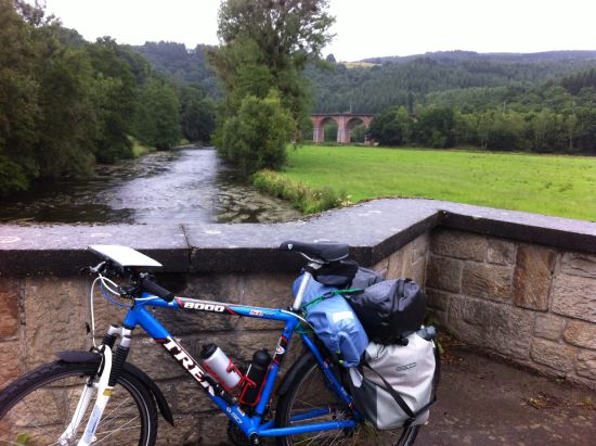 De ochtend vol goede moed opgestaan en bij vertrek een lekkere bak koffie van de overburen gekregen. Er stonden veel Nederlanders op deze camping waardoor het makkelijk was om hier en daar een praatje te maken. Het was nog lekker koel bij vertrek en de kilometers die vlogen voorbij. Wat is Luxemburg mooi om doorheen te fietsen. Dwars door de stad Luxemburg heen fietsen was weliswaar drukken dan op andere delen van de route, maar er was wel veel te zien zoals deze enorm hoge viaduct: